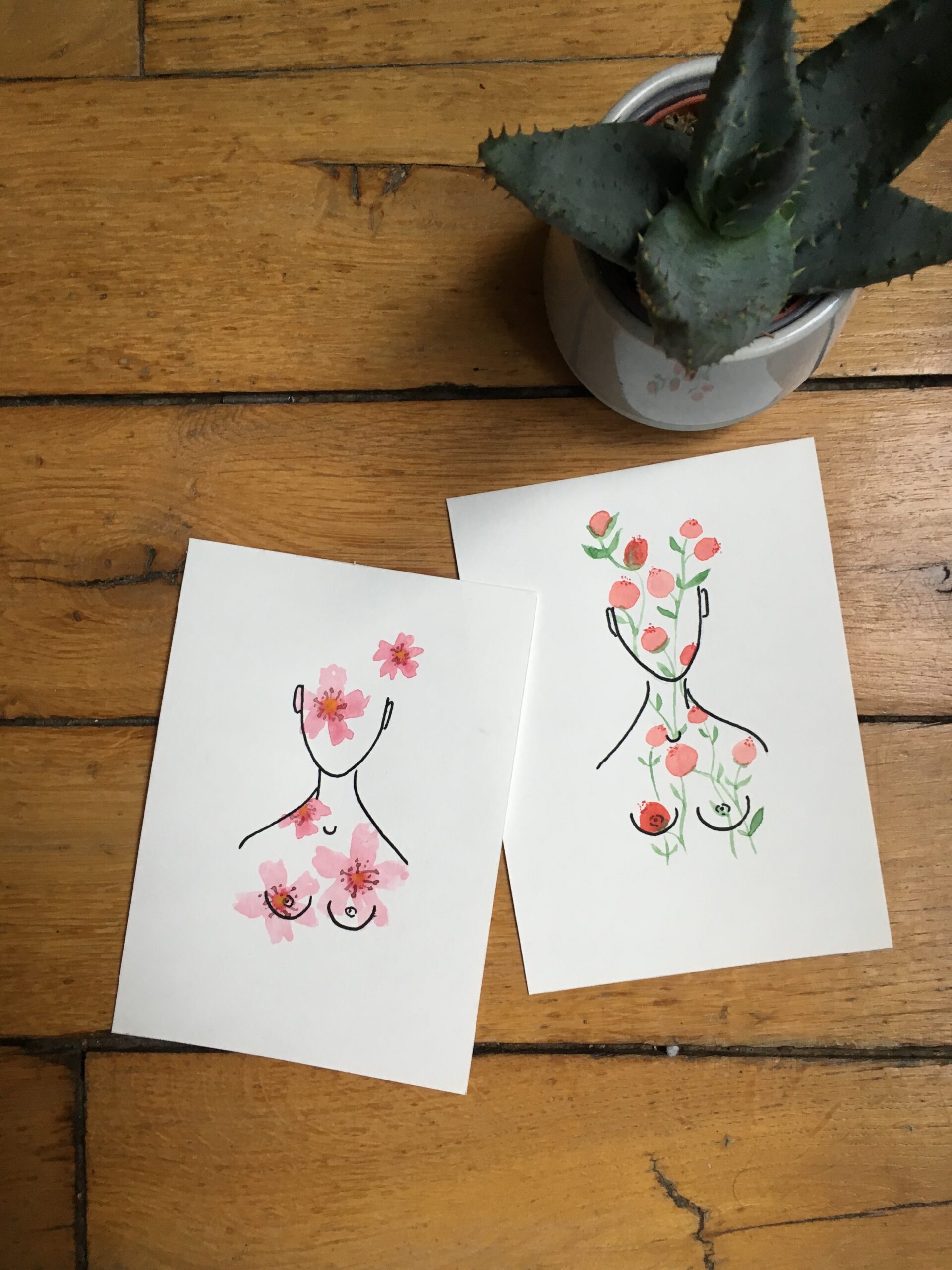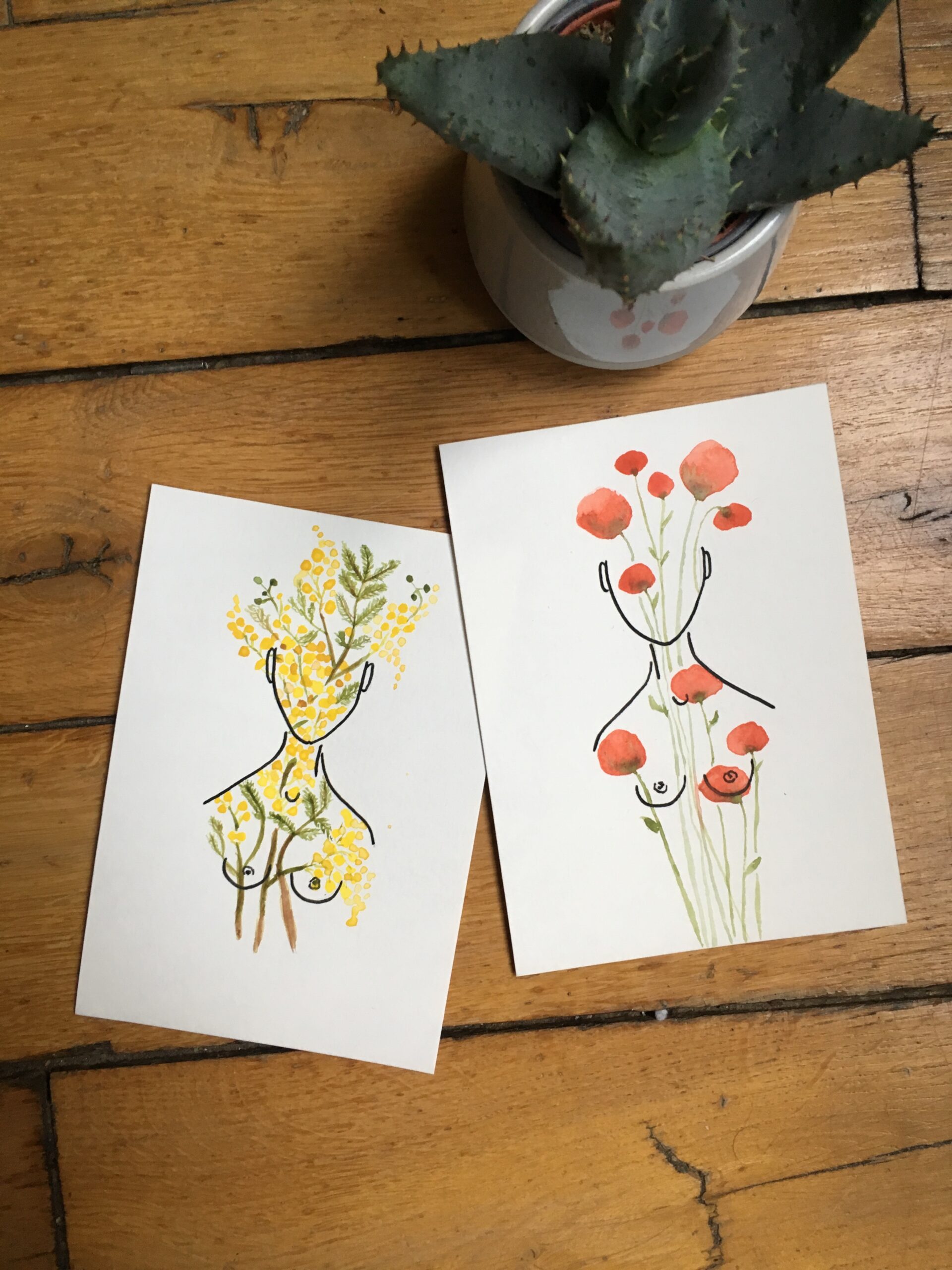 - Format A6 (10,5 x 14,8 cm) sur papier aquarelle 300g/m2.